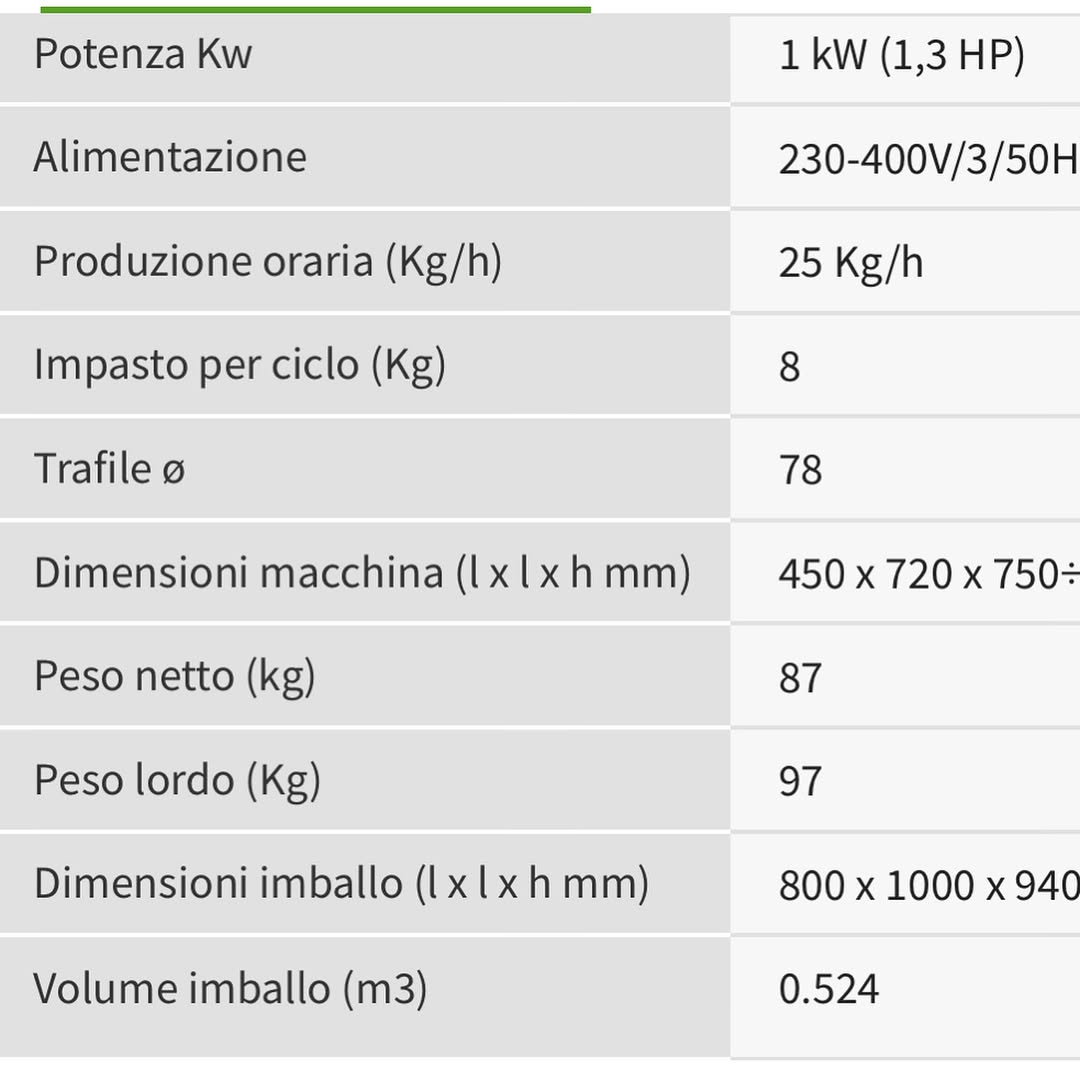 این دستگاه دارای مخزن ۸ کیلوگرم و ظرفیت ۲۵ کیلوگرم در ساعت میباشد. توان موتور آن 1/3hp است و همراه با ۶ قالب و چاقو برش ارائه میشود.