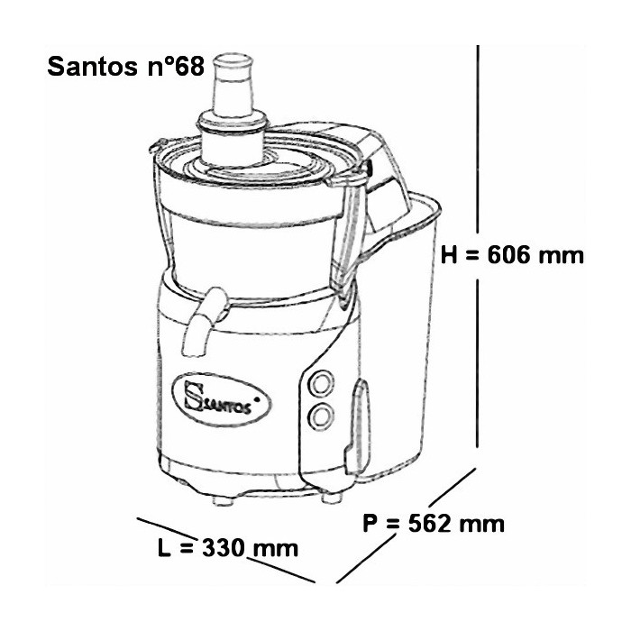 ظرفیت عصاره گیری این آبمیوه گیری صنعتی 140 لیتر در ساعت با قطر ورودی 80 میلیمتر توانایی آبگیری از هویج، سیب، کرفس، انگور، چغندر و ... را دارد. تخلیه اتوماتیک تفاله سانتوس فرانسه مدل 68 موجب اسانتر شدن کار با این دستگاه شده است.